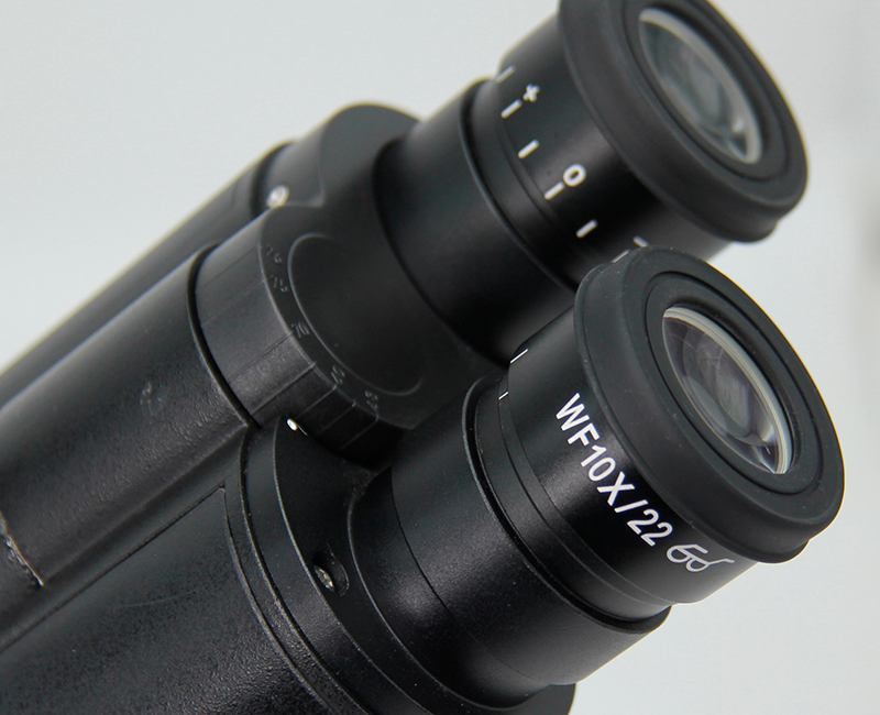 - Cabezal trinocular Seidentopf inclinado 45° Distancia interpupilar 48~76 mm, interruptor de división de luz E100:P0 / E20:P80