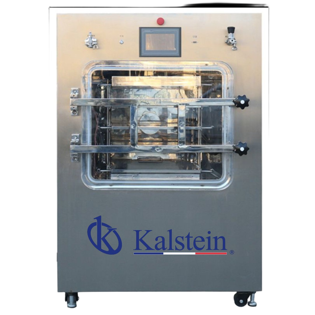 Este modelo incluye un sistema de prensa superior (stoppering), diseñado específicamente para el secado de viales. Tras el proceso, permite sellar las tapas herméticamente dentro de la cámara de vacío, evitando la contaminación secundaria y la reabsorción de humedad. Es la solución perfecta para laboratorios y plantas piloto que requieren automatizar el secado y la sublimación con resultados repetibles y estandarizados.